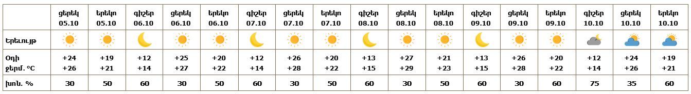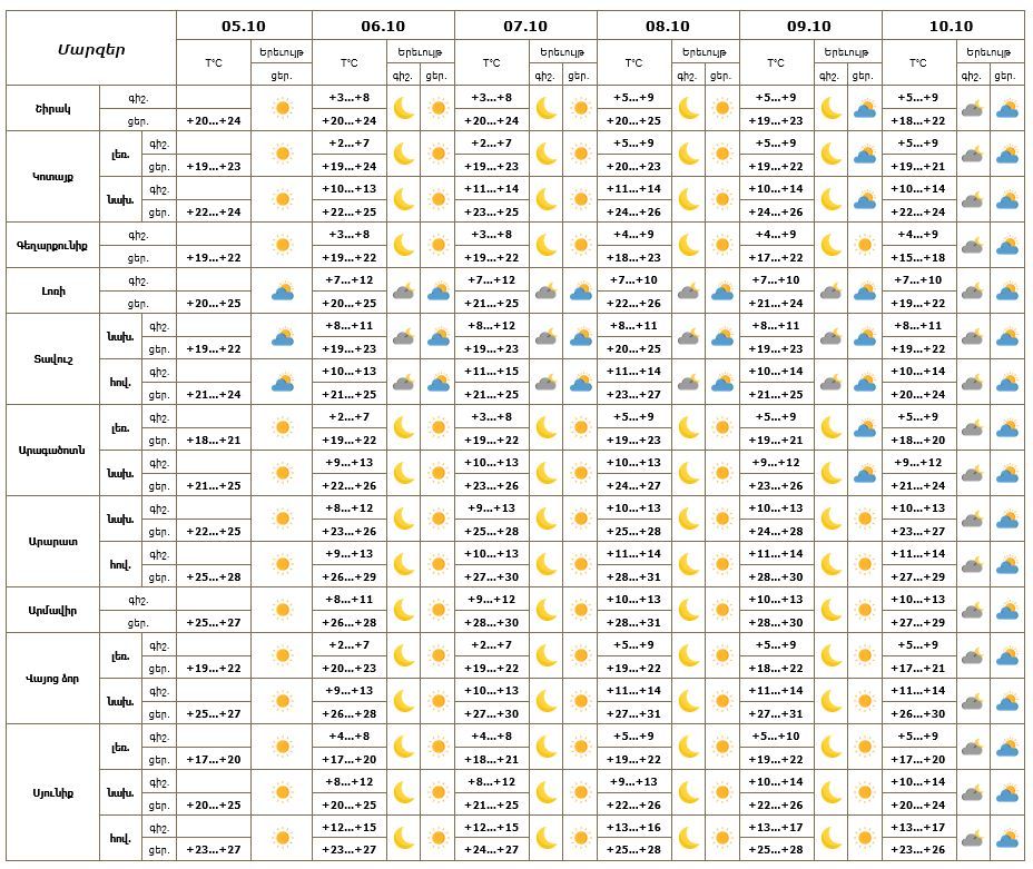 Օդի ջերմաստիճանը հոկտեմբերի 6-8-ը աստիճանաբար կբարձրանա ևս 2-3 աստիճանով: