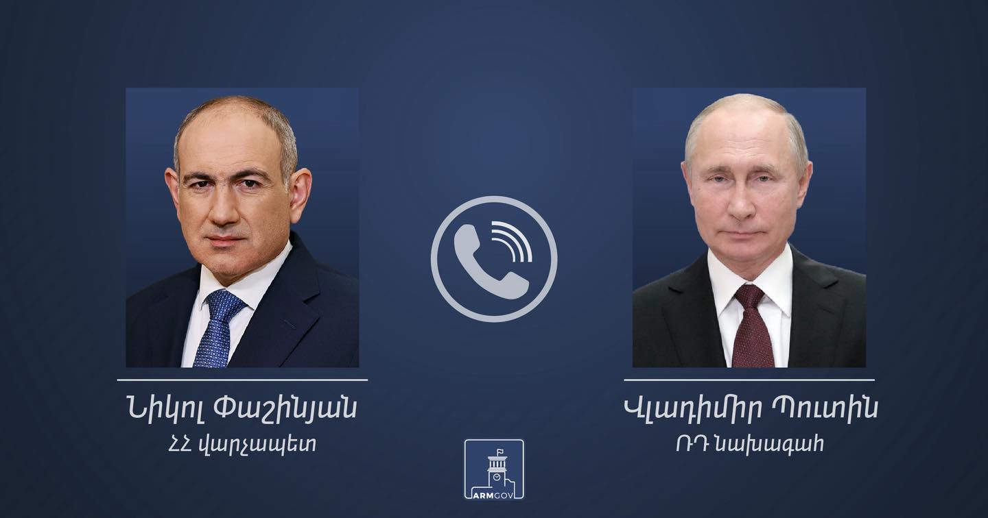 Տեղի է ունեցել Հայաստանի Հանրապետության վարչապետ Նիկոլ Փաշինյանի հեռախոսազրույցը Ռուսաստանի Դաշնության նախագահ Վլադիմիր Պուտինի հետ։