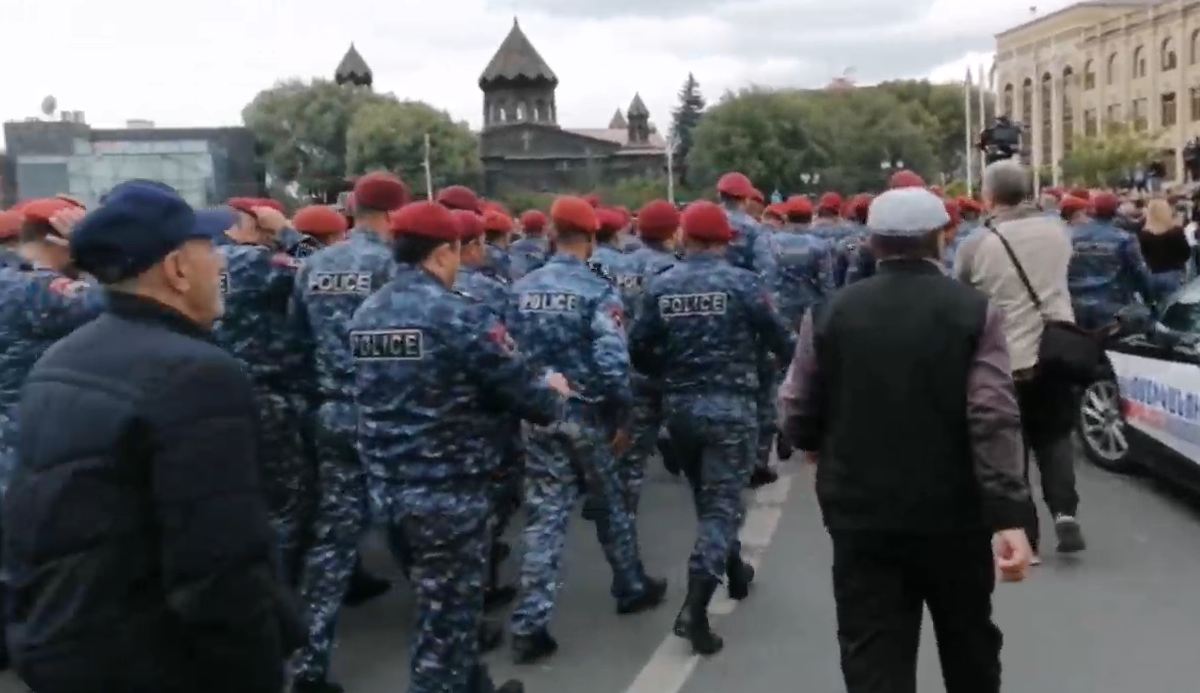 Ոստիկանական պատնեշ՝ քաղաքապետարանի դիմաց