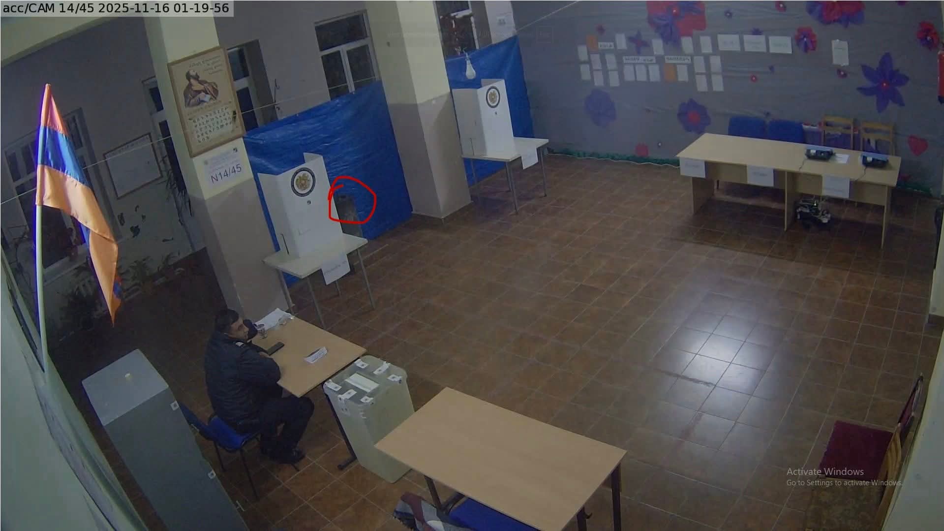 14/24 տեղամասային կենտրոնի քվեախցերի հետևում դեպի երկրորդ հարկ տանող աստիճաններ են, որտեղից տեսանելի են քվեախցերը խախտել քվեարկողի գաղտնիությունը: