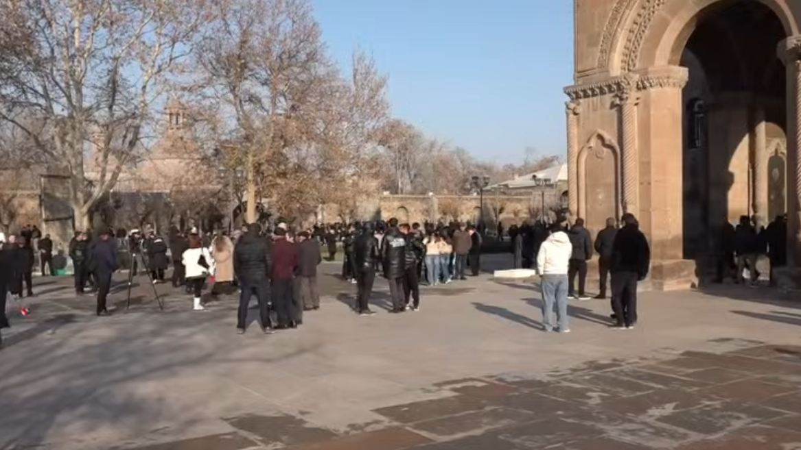 Մայր Աթոռի բակում հավաքվել են հարյուրավոր քաղաքացիներ, որոնք եկել են իրենց աջակցությունը հայտնելու Ամենայն Հայոց Գարեգին Բ կաթողիկոսին: