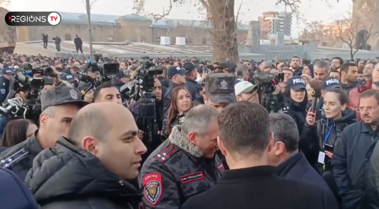 Մայր Աթոռի բակում հավաքված քաղաքացիները 2 կողմից տարբեր վանկարկումներ են անում