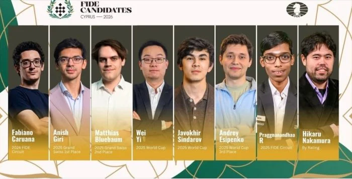 Շախմատի միջազգային ֆեդերացիան (ՖԻԴԵ) հրապարակել է շախմատի աշխարհի չեմպիոնի հավակնորդների մրցաշարի մասնակիցների վերջնական ցուցակը։