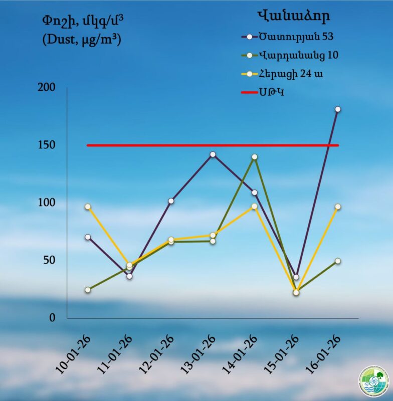 Մթնոլորտային օդում փոշու պարունակությունը հունվարի 10-16-ը գերազանցել է սահմանային թույլատրելի կոնցենտրացիան.