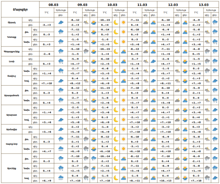 Օդի ջերմաստիճանը մարտի 9-10-ը գիշերային ժամերին կնվազի 2-4 աստիճանով։
