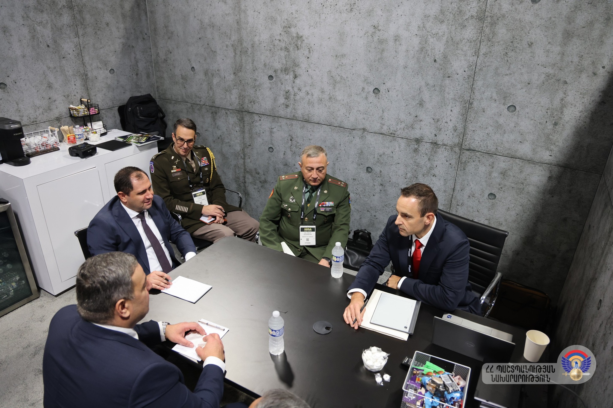 Министр обороны Армении Сурен Папикян встретился в Вашингтоне с руководством американской компании «Milliken», специализирующейся на проектировании и разработке военной формы. Об этом сообщили в Минобороны РА.