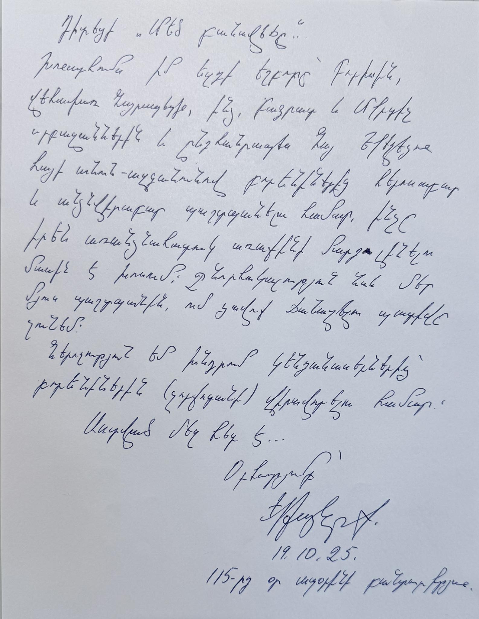 Склоняю голову перед моим езидским братом Борисом, перед Всечеснейшим Католикосом, перед собой, перед архиепископами Багратом и Мкртичем, и в целом — перед Армянской Апостольской Церковью, за героическую и самоотверженную защиту от гиен в человеческом облике, но с армянскими именами и фамилиями. Это свидетельствует о его высокой нравственности и благородстве.