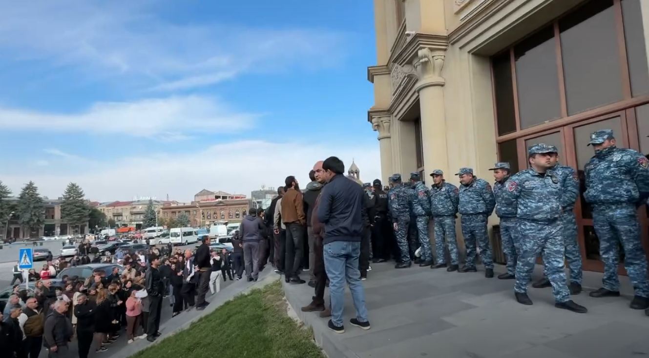 В мэрии Гюмри спецназ проводит специальную операцию, здание окружено полицией. непрерывно звонят церковные колокола. Один из сотрудников мэрии потерял сознание — его увезла машина скорой помощи.