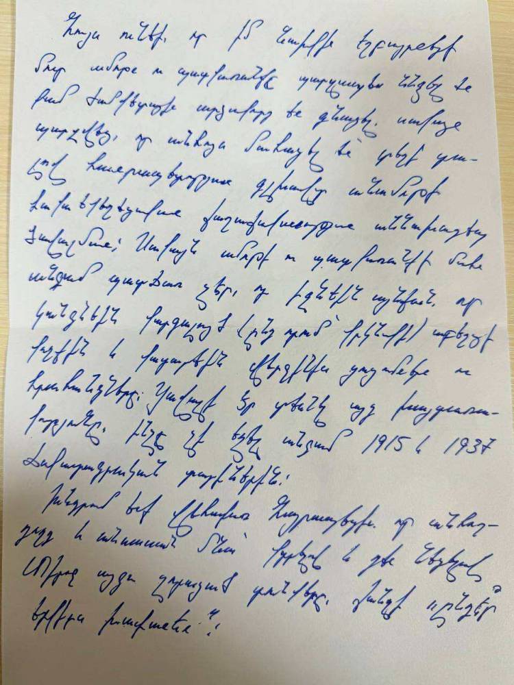 Письмо-послание архиепископа Микаела, предстоятеля Ширакской епархии Армянской Апостольской Церкви:
