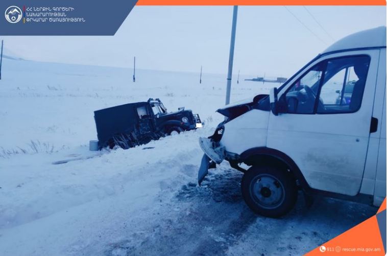 Oколо 12։30 у села Алагяз столкнулись микроавтобус, грузовик «ГАЗ-69» и «Газель», обслуживающая маршрут Артик – Апаран – Ереван.