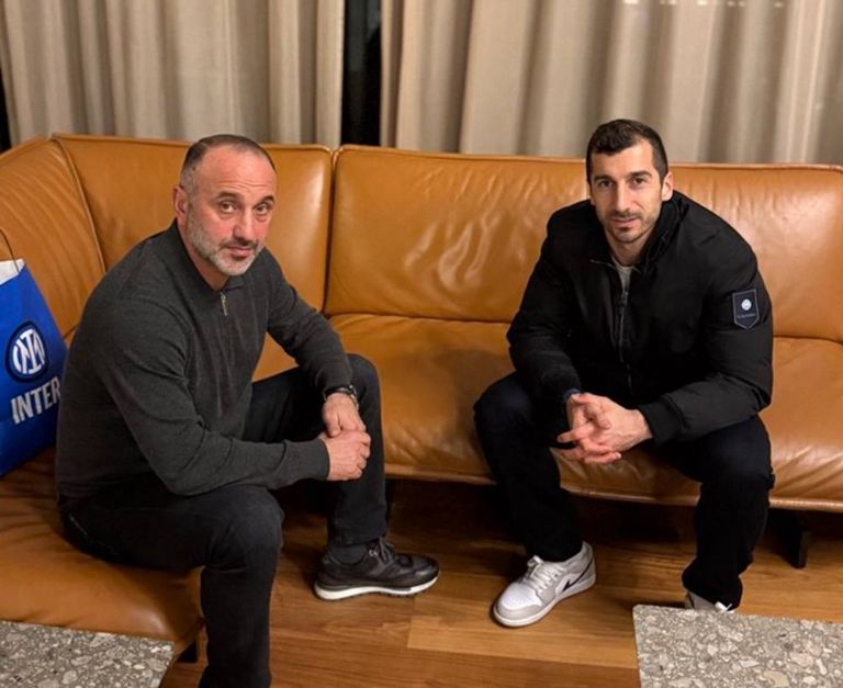 Главный тренер сборной Армении Егише Меликян встретился с полузащитником миланского «Интера» и бывшим капитаном национальной команды Генрихом Мхитаряном в Милане.