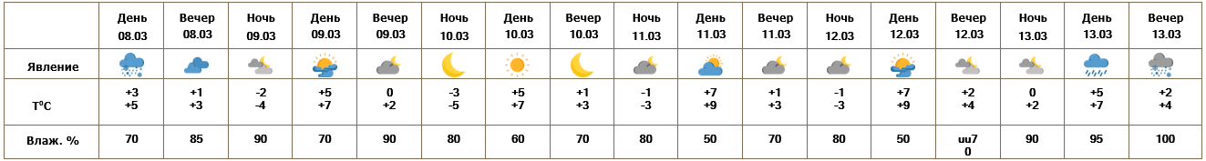 С 9-12 марта, ночью 13-го ожидается погода без осадков.