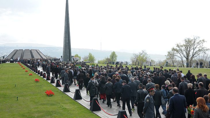 24 апреля со всего мира армяне приезжают на свою историческую родину, чтобы со своими соотечественниками из Армении почтить память своих предков. Они возлагают цветы к вечному огню в Цицернакаберде. К вечному огню возлагают венки и иностранные делегации.